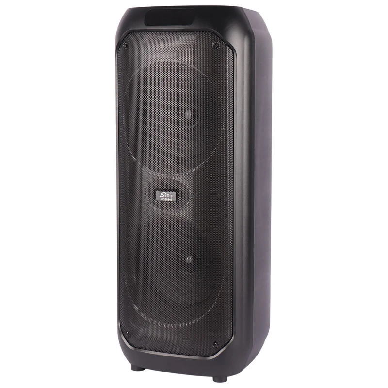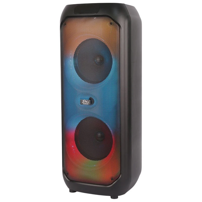 اسپیکر چمدانی بی سیم قابل حمل سینگ ای مدل ZQS8240 همراه با میکروفون و ریموت کنترل و دارای نورپردازی RGB نحوه اتصال بی سیم و باسیم از طریق بلوتوث و جک 3.5 میلی متری صدا قابلیت پخش فایل های ذخیره شده توسط فلش مموری و حافظه MicroSD متریال بدنه ساخته شده از جنس پلاستیک با کیفیت، مقاوم در برابر آسیب های فیزیکی مجهز به کلید های فیزیکی تعبیه شده به منظور مدیریت پخش صدا، ولوم میکروفون و … برخورداری از باتری داخلی قابل شارژ با ظرفیت 5000 میلی آمپر ساعت قابل شارژ توسط درگاه تایپ سی و به کابل همراه دارای دو عدد درایو اسپیکر 8 اینچی با حداکثر توان 50 وات (2*25W)، پاسخ فرکانسی 45 هرتز الی 18 کیلوهرتز و حساسیت 50db